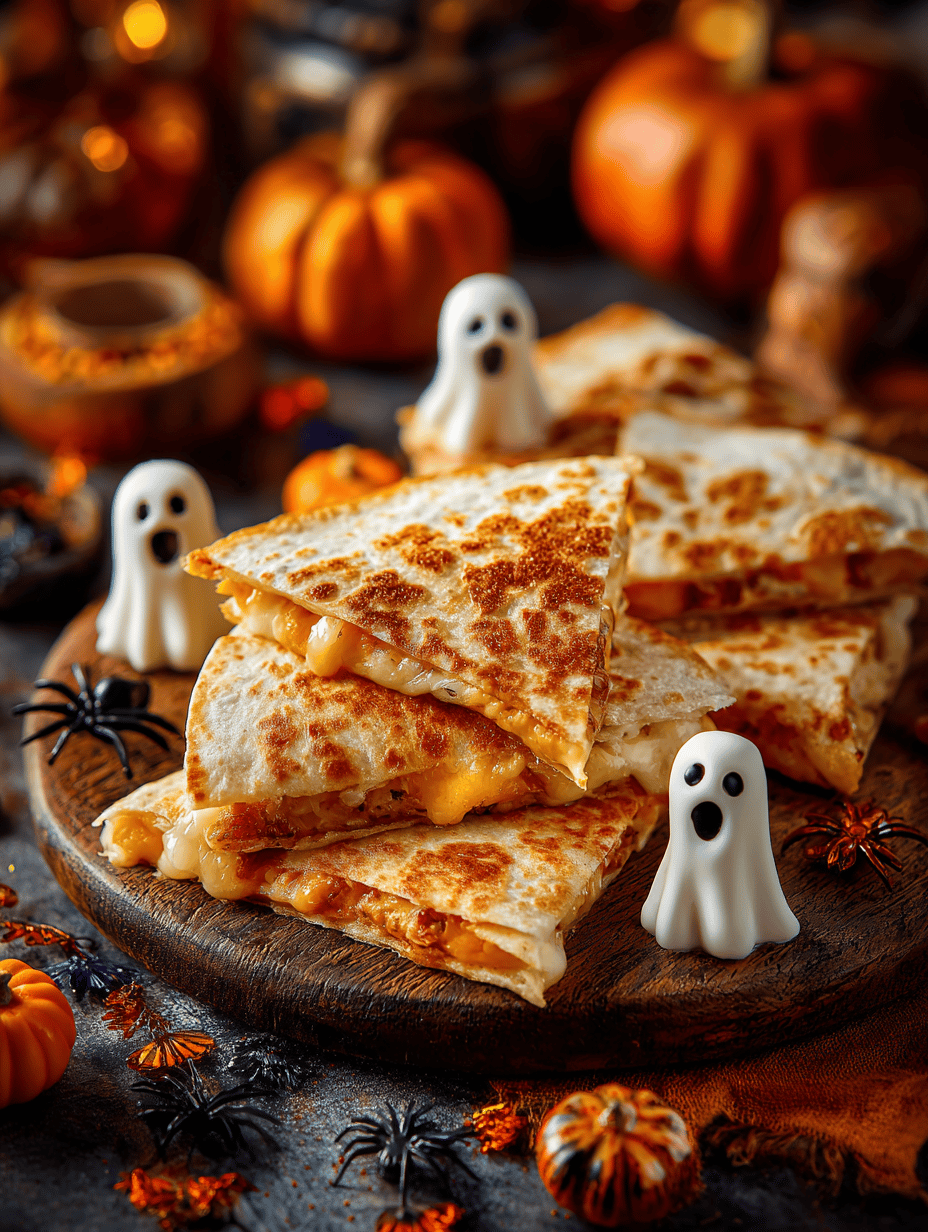 9. Serve the spooky quesadilla slices with dollops of sour cream or guacamole for dipping and extra Halloween fun.