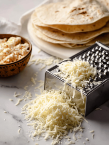 • Shredded cheese: Oozy, melted, with a salty punch. Cheddar, Monterey Jack, or a blend—whatever melts best for you.