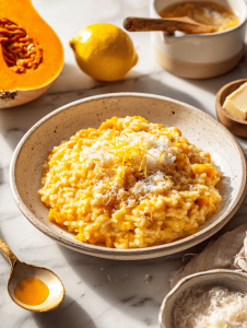 - Serve hot, garnished with extra Parmesan and a squeeze of lemon if desired. Enjoy the comforting warmth of this seasonal pumpkin risotto.
