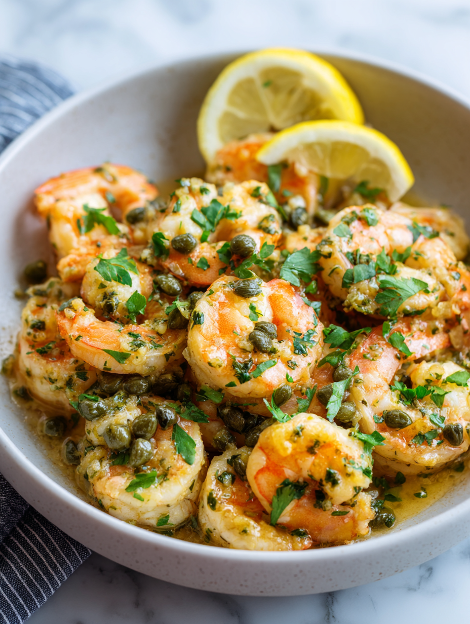 - Serve immediately, spooning the lemon-caper sauce over the tender shrimp. Garnish with additional lemon zest or parsley if desired, and enjoy a bright, flavorful dish.