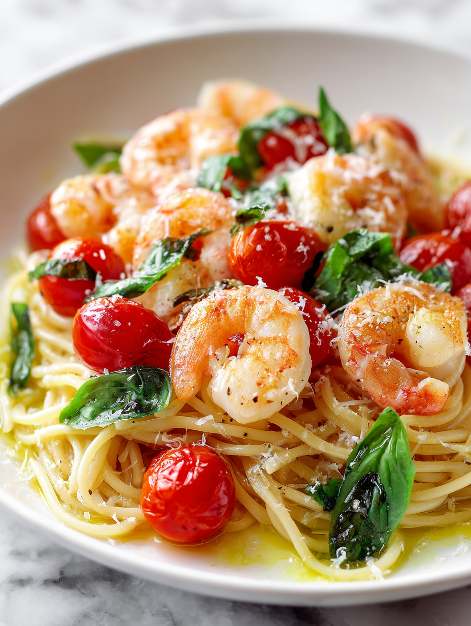 This dish is a reminder that simple, fresh ingredients can create something truly exciting on a busy night. The bright aroma of basil, the juicy burst of tomatoes, and the tender shrimp come together easily, making it a go-to for spontaneous dinners. It’s a dish that’s both straightforward and satisfying, perfect for seasons when everything feels just a little more alive.