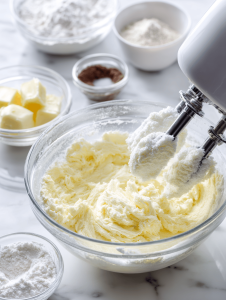 - In a separate bowl, beat the softened butter and sugar with an electric mixer on medium speed until the mixture is pale, fluffy, and fragrant, about 3-4 minutes.