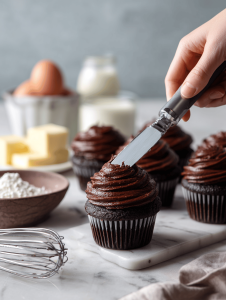- Once cooled, frost the cupcakes with your favorite dark chocolate or cream cheese frosting for a decadent finish.
