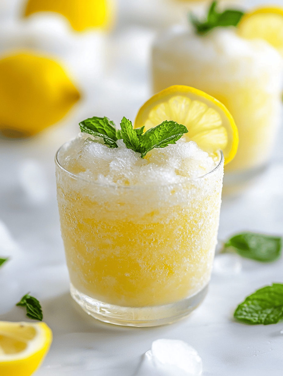 - Scoop the lemonade slushie into glasses and serve immediately for a refreshing, crunchy citrus treat.