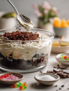 - Chocolate Cake or Cookies: Provides a rich, crumbly base that contrasts with creamy layers. Swap for gingerbread for a holiday twist.