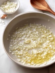 - Add the finely chopped onion and sauté, stirring frequently, until translucent and soft, about 4-5 minutes. The onions should look slightly glossy and smell sweet.