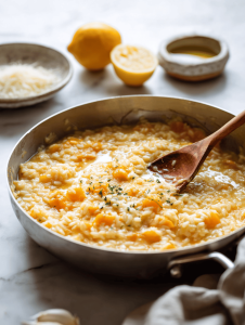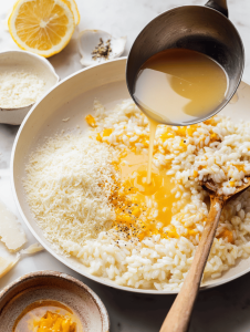 - Once the rice reaches your desired consistency, stir in the butter, grated Parmesan, and lemon juice or zest. Taste and season with salt and pepper as needed.