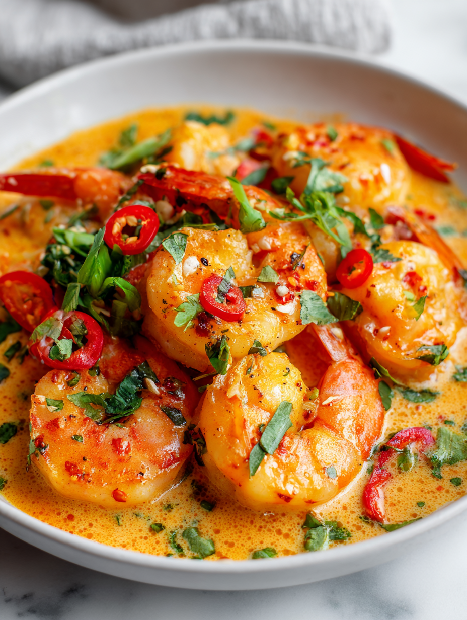 Focusing on how the creamy coconut sauce can be a comforting, versatile base for quick weeknight dinners, turning a simple shrimp dish into a cozy, flavorful escape after busy days.