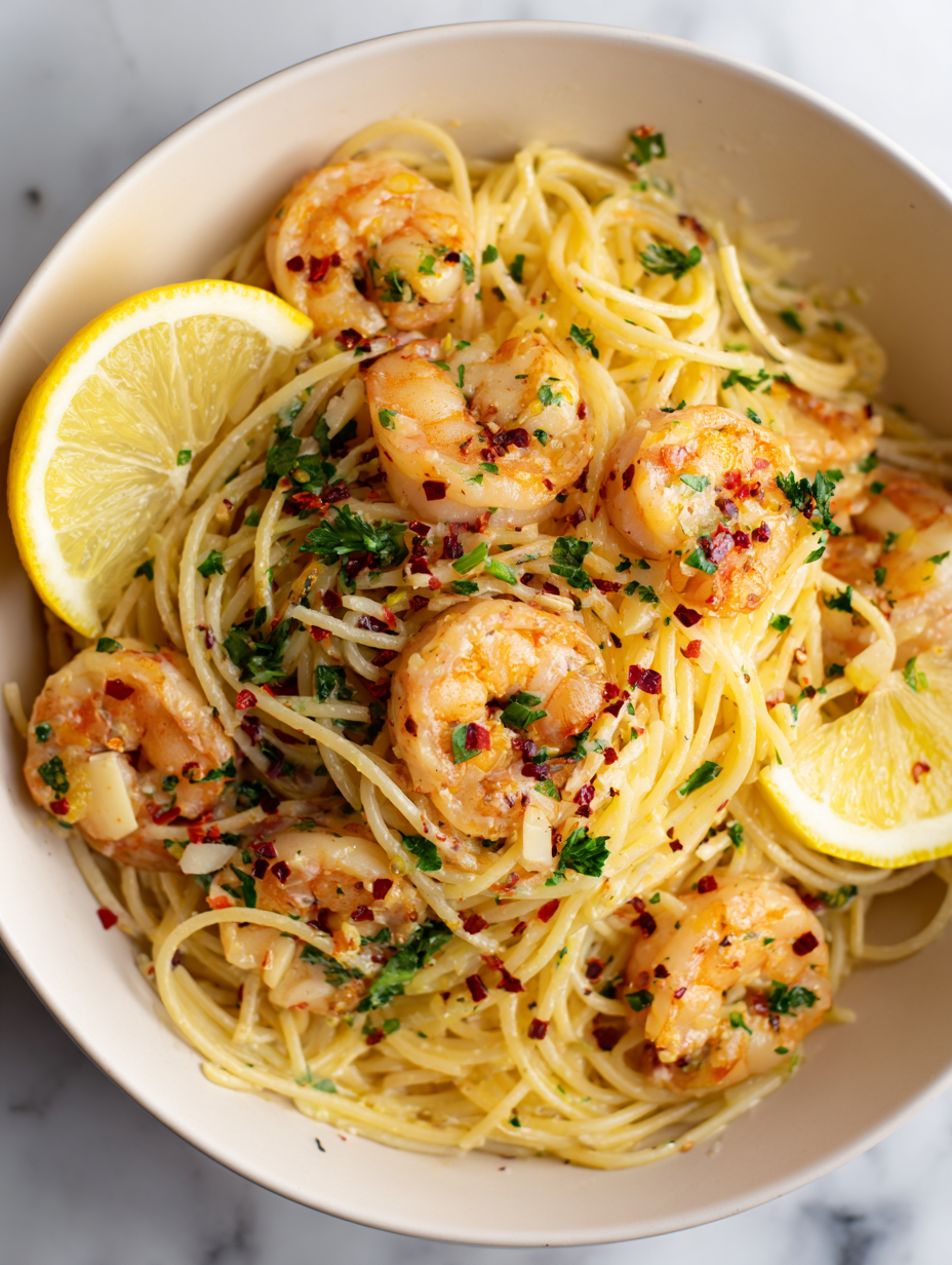 - Checkpoints & Doneness: Shrimp should be pink and firm. Pasta should be glossy and coated. Garlic should be golden and fragrant. The sauce should cling lightly without being greasy.
