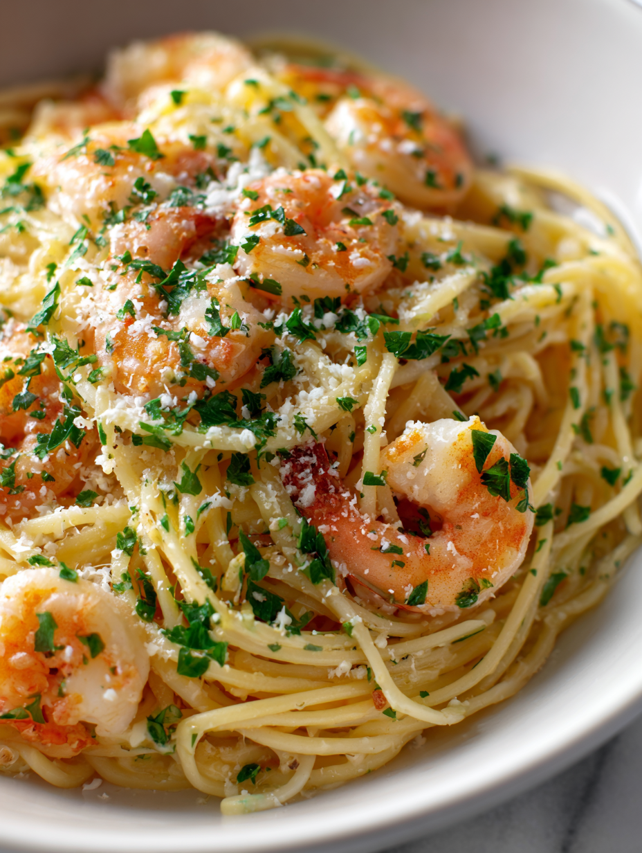 10. Check for doneness: The pasta should be tender yet firm, the sauce silky, and the shrimp perfectly pink and juicy. The aroma should be bright and garlicky, with a hint of lemon.