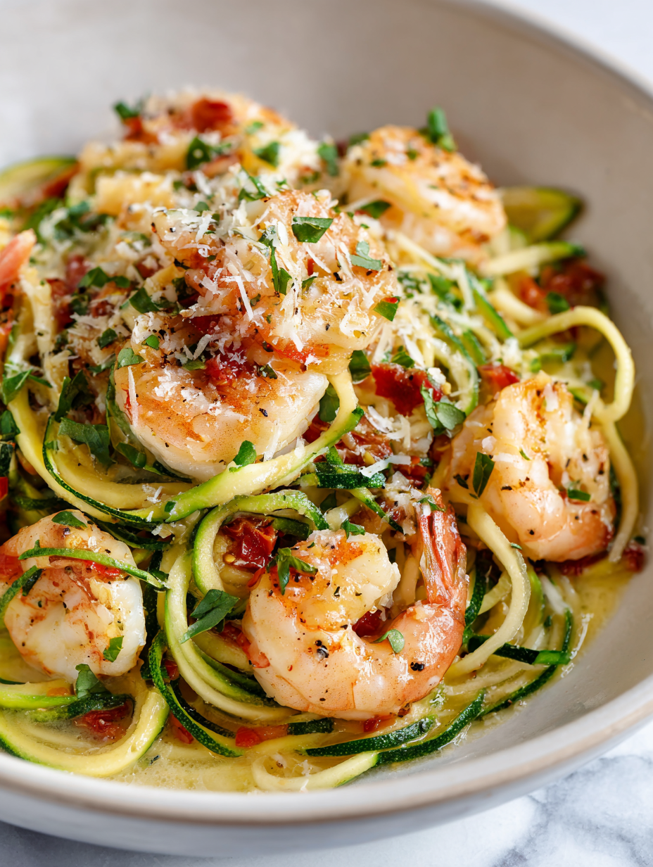 - This recipe sprouted from a lazy afternoon of rummaging through the fridge and realizing I had a bunch of tiny shrimp and zucchini that needed using up. Instead of tossing them into separate dishes, I wanted something that brought them together in a flavorful way—kind of a sneaky upgrade to a regular pasta night. The idea of turning zucchini into a pasta stand-in felt like a small act of culinary rebellion, especially when it worked out so well.