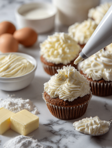 - Once cooled, pipe or spread a generous amount of cream cheese frosting on each cupcake, creating a spooky, messy look.