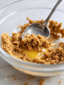 Step 2: Mix crushed gingersnap cookies with melted butter until damp and crumbly.